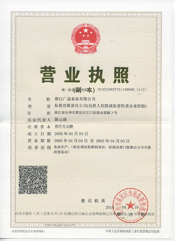 浙江广益食品有限公司是浙江省级农业骨干龙头企业,浙江省农产品加工示范企业。地处中国浙江黄金海岸线中部,闻名世界的密桔之乡—台州市黄岩。